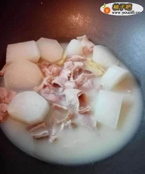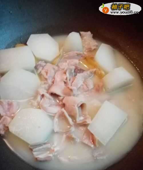 8再把猪肚放到锅中,同萝卜汤一起煮20分钟