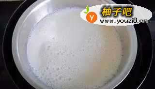 5把烧开的豆浆倒在干净的不锈钢盆或不锈钢托盘里,底下放一个锅,锅里放水,隔水微开加热。