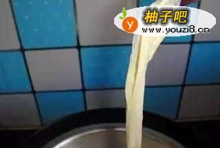 6豆浆盆的表面随着加热,开始出现一层豆皮,就是腐竹皮。用筷子从两边夹起。