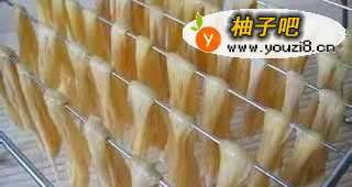 7晾在铁丝架上风干。风干5分钟后就变成了干腐竹。