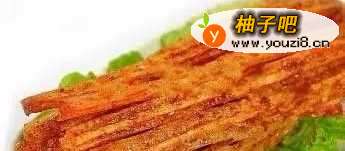 8将豆皮在滚水中焯一下,起油锅,将豆皮炸至金黄,捞出。