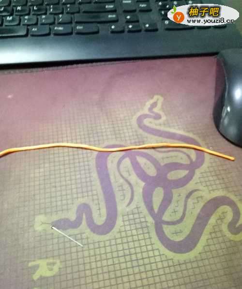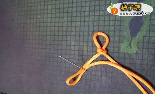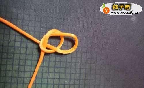 准备一要花绳,准备打个结,将短的一头压在下