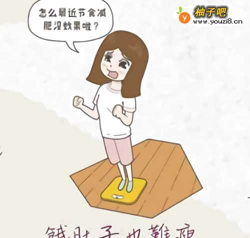 2饿肚子也难瘦:每天饥肠辘辘、忍饥挨饿,先是为了减肥舍弃掉早餐晚餐,后来午饭也一减再减,恨不得吃米饭也要一粒一粒的算。可是饿到全身脱力,到头来仍旧看上去很臃肿。这是因为节食减肥,其实并不能真正减掉脂肪喔。