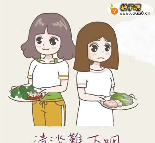清淡难下咽:很多想瘦的人多信奉【水煮一切食材】,觉得减肥不能吃油。正餐就全都吃水煮生菜、水煮蕃薯、水煮鸡胸肉,吃起来完全享受不到快乐(至少教练我是这样)但其实每天摄取适量的脂肪是很重要的。采用橄榄油也是很不错的选择喔每天食用油控制在25-30克就好。照样可以吃的清淡美味又健康呢!