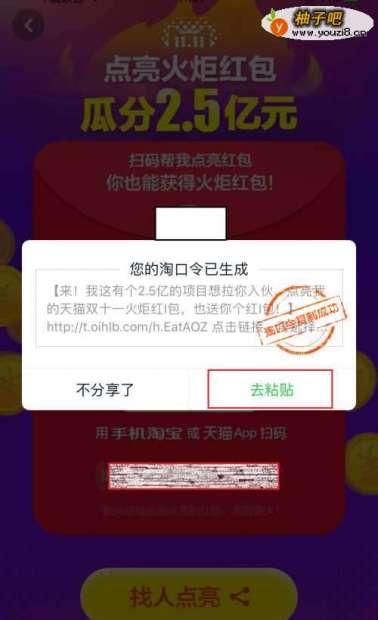 6如果是选择通信工具进行分享的话,就会弹出一个口令,然后点击去粘贴,打开微信,将复制的口令粘贴给好友即可。