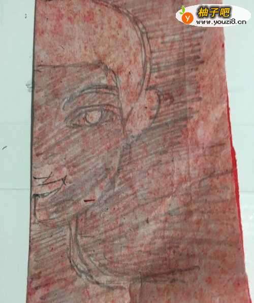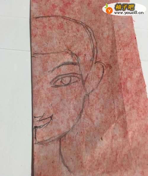 2第二步 折叠完之后 拿起绘图铅笔 画上男孩的头发 耳朵 脸庞的外线轮廓