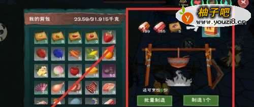 5第五步,把准备好的材料放到烹饪锅中,点击制造1个,如下图