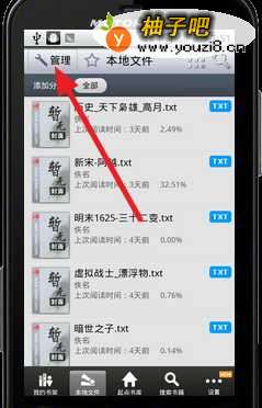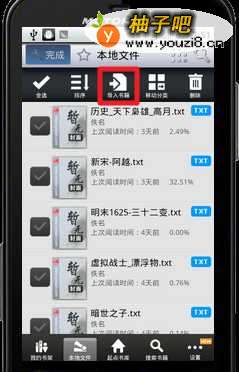 7然后,从下图的“sdcard”文件夹中选择你想导入到起点阅读器中的书籍。