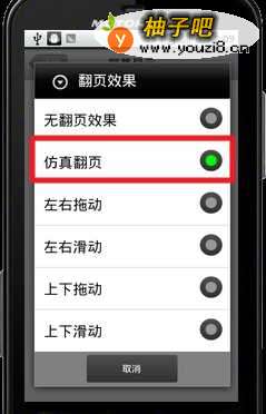 12最后选择“仿真翻页”即可,以后在阅读中点击一下屏幕,阅读器就会自动翻页,翻页的效果就和你现实中翻书本的感觉是一样的。