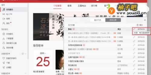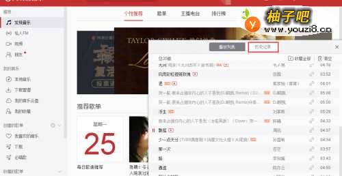 4这时我们会注意到有一个历史列表,我们点击,这里所展示的就是已经听过的歌曲。