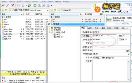第五步,登录FTP软件,首次登录时点击“站点”--》“站点管理器”,然后填上用户名、密码、空间IP地址,之后点击连接即可。