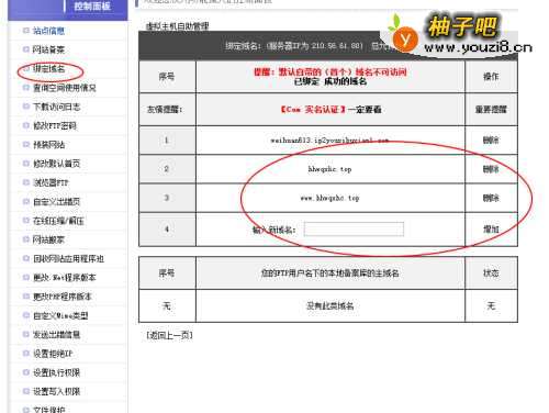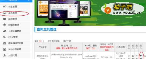 3登录服务商的网站注册成管理员,点击“主机管理”-》“管理”(红圈处),进入空间绑定刚才买的域名