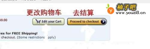 6添加到购物车完成后显示下图:若继续购物,直接点击页面左上角的Amazon图标跳回主页即可。如果已经购物完毕,点击“Proceed toCheckout”进行下一步。