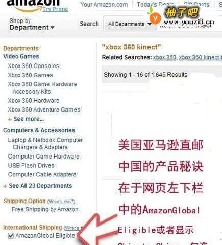 选择美国亚马逊直邮中国的产品秘诀在于屏幕坐下栏中的“AmazonGlobal Eligible"选项,只要点击了这个选项,产品搜索结果中多数不支持直邮中国的产品将会被过滤掉。这是海淘攻略关键之一,解决了美国亚马逊购物直邮遇到的找商品问题。