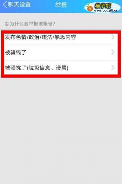 2在聊天设置里我们点击最下方的被骚扰了,并举报该用户,如下图所示。