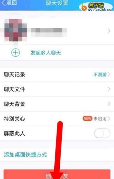 首先我们 找到这个人的聊天界面,选择右上角图示的位置,点击进入。