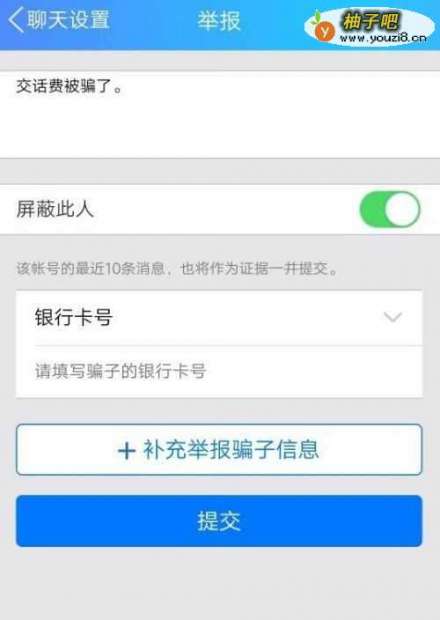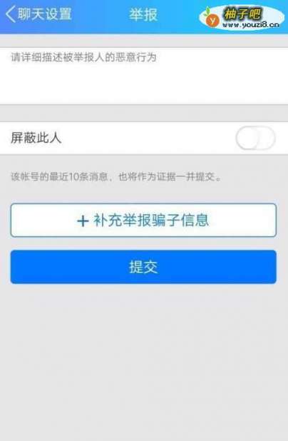 6我们还可以举报的同时屏蔽该用户,不再接收他的任何消息。