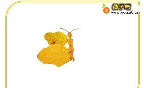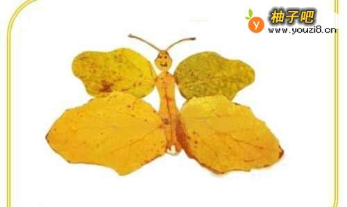 5用剪刀,把树叶剪出动物的右边翅膀形状,幼儿园秋叶制作图片已完成,如下图所示。