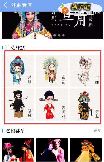 6这时,就来到了戏曲的页面了,你将会看到各种类型的戏曲,如图所示