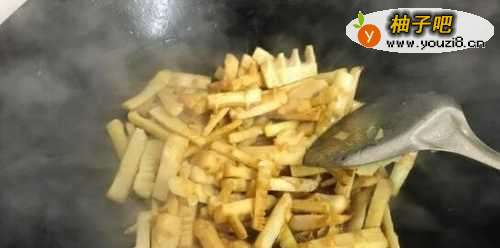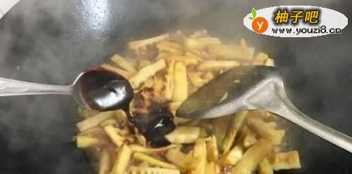 5放入盐和生抽后继续翻炒,倒入少许开水。