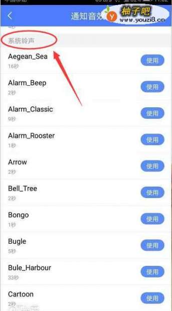 6然后在通知音效页面往下翻看找到 系统铃声,直接选择铃声点击使用就可以了哦,如下图