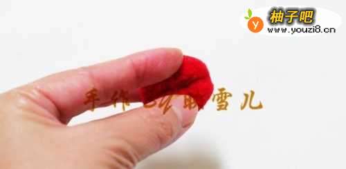 4用热溶胶将仿皮绳粘入毛球中心。