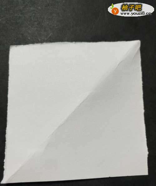 2第二步,把准备好的这张正方形纸按照对边对折。