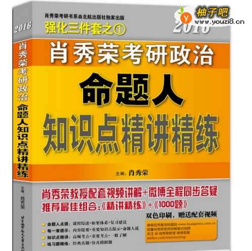 43.政治,政治的话就跟着肖秀荣走就ok,开始的话是【知识点精讲精练】这个是很全的知识点,同时配套【1000题】看一章做一章,等到了考研后期就先用【8套卷】,等最后冲刺了基本就要背【4套卷】,大题基本都要背。