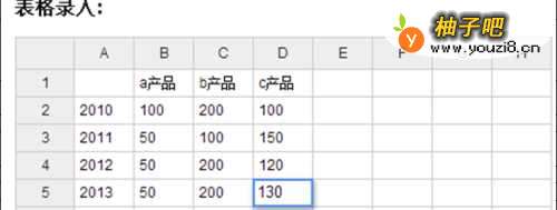5标出图表标题和图例(图例的作用:从图的下方我们可以知道,圆点蓝线的是A产品的变动曲线,可以看到A产品先降后平稳,发展趋势是先衰后定)。
