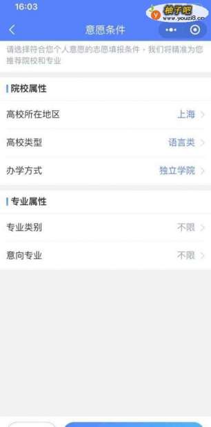 根据个人意愿和条件,选择高校所在地、高校类型、办学方式和专业属性