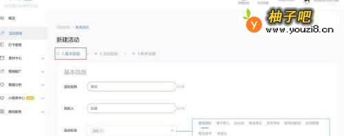 3输入【活动名称、发起人、活动标签】,点击下一步