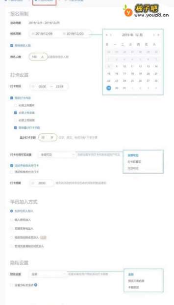 5设置完毕【报名限制、打卡设置、学员加入方式、隐私设置】模块后,点击【完成】