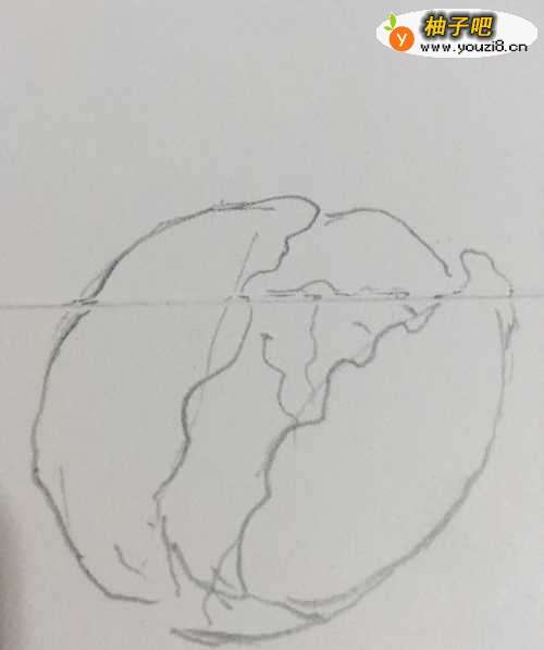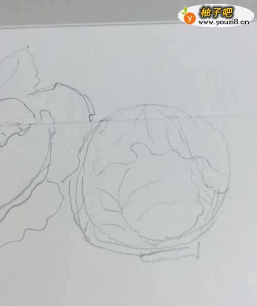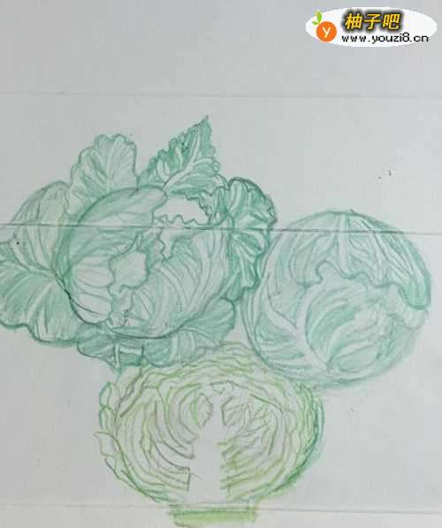 5第五步 再画上这个组图最后一部分 画上一个切过的包头菜 充实一下这个组图的内容