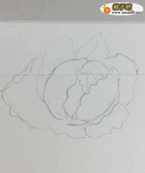 2第二步 根据这个轮廓 画出包着的叶菜 还有弯弯曲曲的叶边