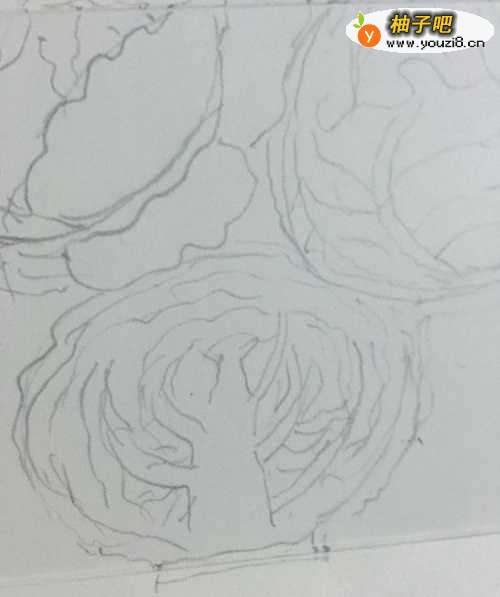 3第三步 画完包着的叶菜 再画上几片放开的叶子菜片 衬托一下