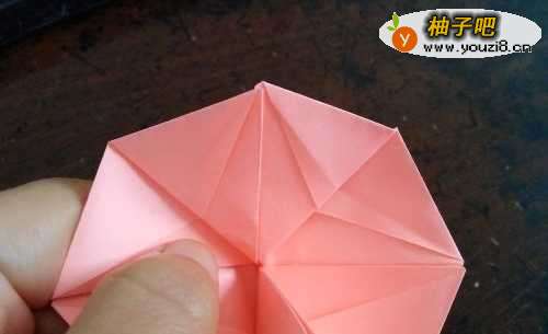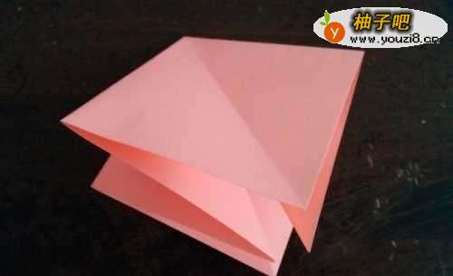 6我们再用7.5*7.5的来折,先对角线对折,再把两侧的角向艳诸内折,再向外分别翻折。