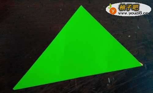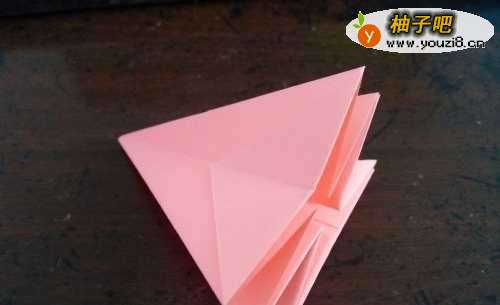 3折好后,我们打开彩纸,把带角的向上,我们从新组合,如图三。