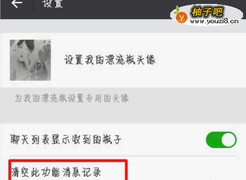 4在“设置”界面点击一下“清空此功能消息记录。”