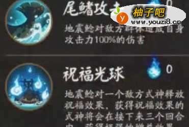 2【祝福光球】这个技能针对的是丑女,结合地震鲶“对得到祝福却死亡、然后被复活的式神有额外伤害”的机制,速度不够快的丑女有苟不住的风险,大家可以自行斟酌。(此处匣中少女或有奇效,因为匣女的回梦从机制上来说不算复活,而是免疫死亡)。