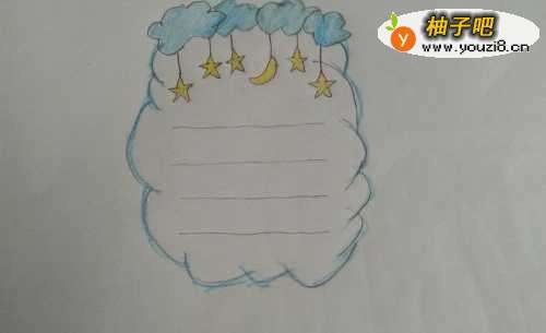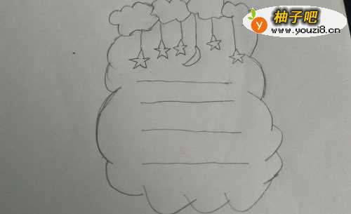 5画好线后,从线下画上星星和月亮。月亮最好是位于中间。