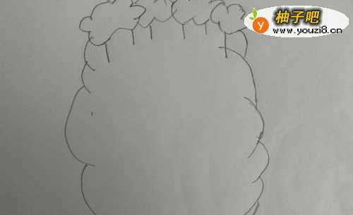 2我们先画一边云朵状弧形,大小适中不需要太过于对称。然后再画另一边画好后用黑笔勾勒一下。