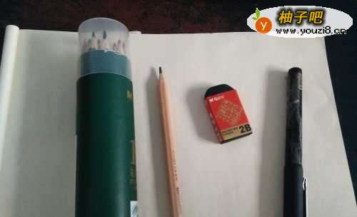 首先准备好画画工具如铅笔,橡皮,黑笔,彩铅,白纸。