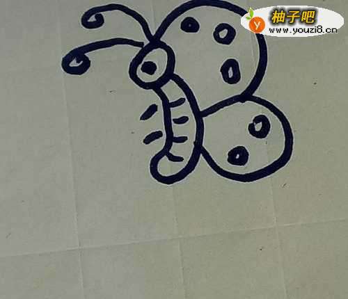 2然后我们再在蝴蝶的头上画上黑黑的圆形的小眼睛