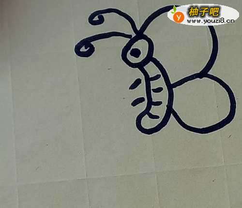 4然后我们在蝴蝶身体的左侧画上蝴蝶小小腿