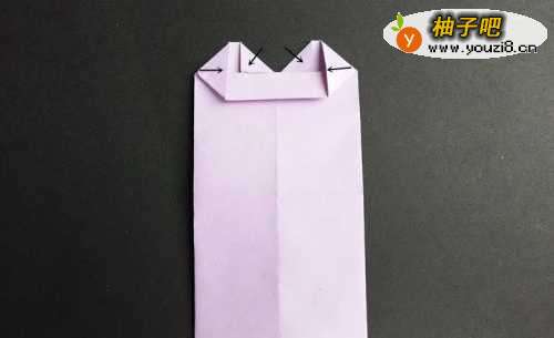 5将短边部分翻折上去,然后找到另外一条折痕,将左右两边三角形部分分别向左向右折再将短边部分翻折上去。