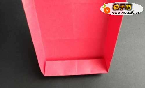 6用胶水固定后,一个盒子折好。取另一张纸,重复上述折法,将一个作为底部,一个作为盒盖。再制作爱心部分。