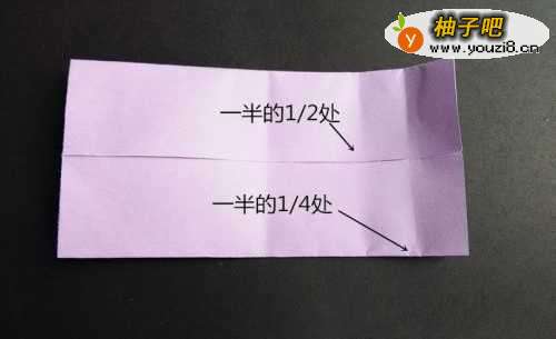 8找到靠近边缘的1/4部分,将纸翻到背面,沿刚刚的四分之一折痕将纸折向前面,将上面左右重叠部分左边向右压平。上面右边部分往左打开。