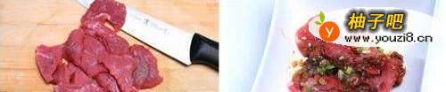 放入少许清水,将肉打散,再放入蒸肉米粉拌匀,使每一片牛肉上蘸满米粉