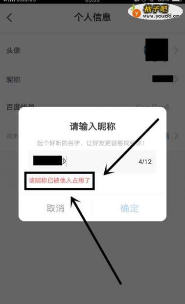 6注意:百度网盘昵称与ID一样,都是要求唯一的,不能与他人昵称相同。若相同则系统会提示此昵称已被占用,请再次修改,如图所示
