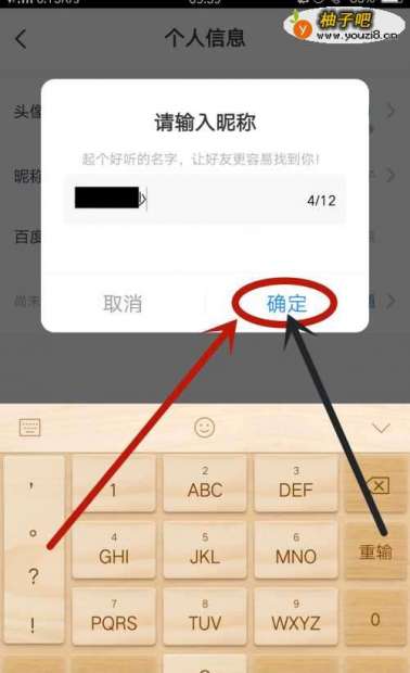 5在昵称修改页面,删除旧昵称,输入新的昵称即可,点击确定,如图所示